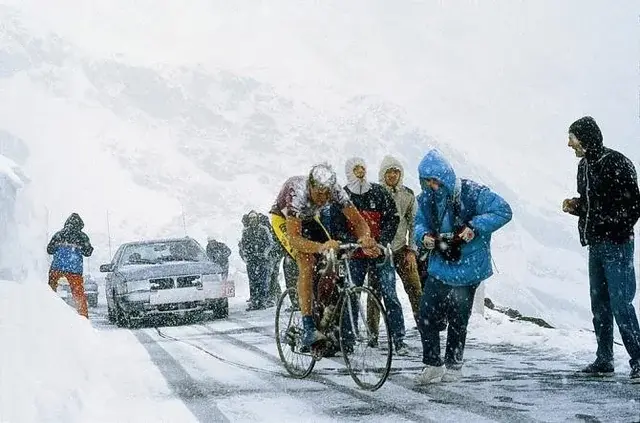 If you ask riders of a certain generation about the worst cold they’ve ever seen, the Gavia stage of the 1988 Giro comes up before you even finish the question. The pass is intimidating on a clear day, but that afternoon it turned into something closer to an Arctic expedition; a snowstorm swallowing the road, visibility collapsing, temperatures plunging, and riders climbing into a white void that looked like a narrow trench carved through a glacier.